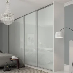 Ellipse Sliding Wardrobe Door 1 Panel Arctic White Glass With Aluminium Frame (W)914mm