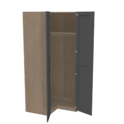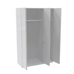 - The carcass features adjustable feet for levelling on uneven floors and is supplied with the instructions and components to secure to the wall (wall plugs not supplied). The corner wardrobe is a storage must have, it features five internal shelves and ample hanging space. A real solution for difficult bedroom spaces