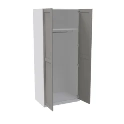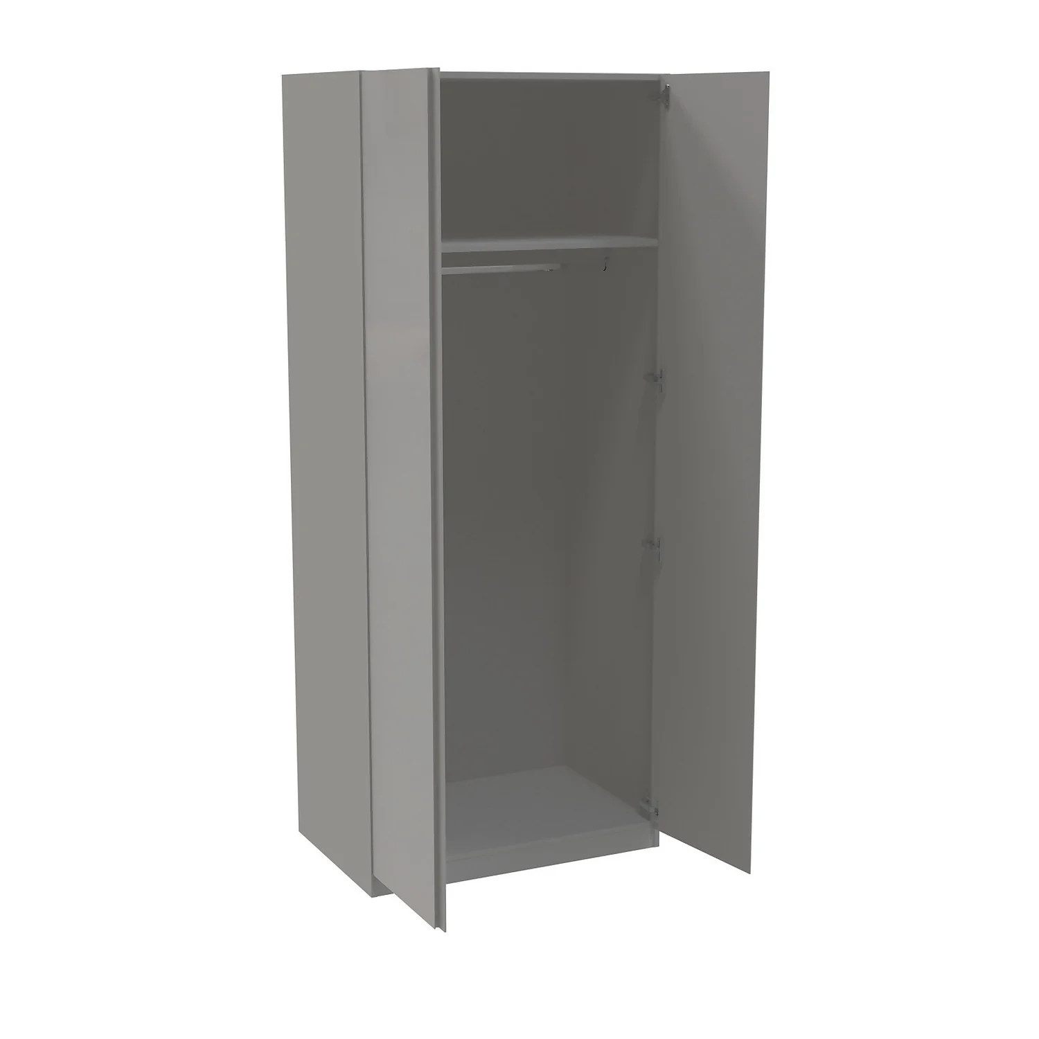 The House Beautiful bedroom range is exclusive to Homebase and offers a selection of different finishes and storage configurations to suit your needs. With a range of carcass colours and contrasting door designs, you can select the look to fit your bedroom aesthetic. This double wardrobe features a grey carcass and beautiful gloss grey handleless doors for a modern sleek look. The wardrobe features premium soft-close Blum hinges, a shelf and a hanging rail. You can customise your wardrobe with our additional internal storage options (available separately) including internal drawers, shelves, dividing shelves and extra hanging rails.