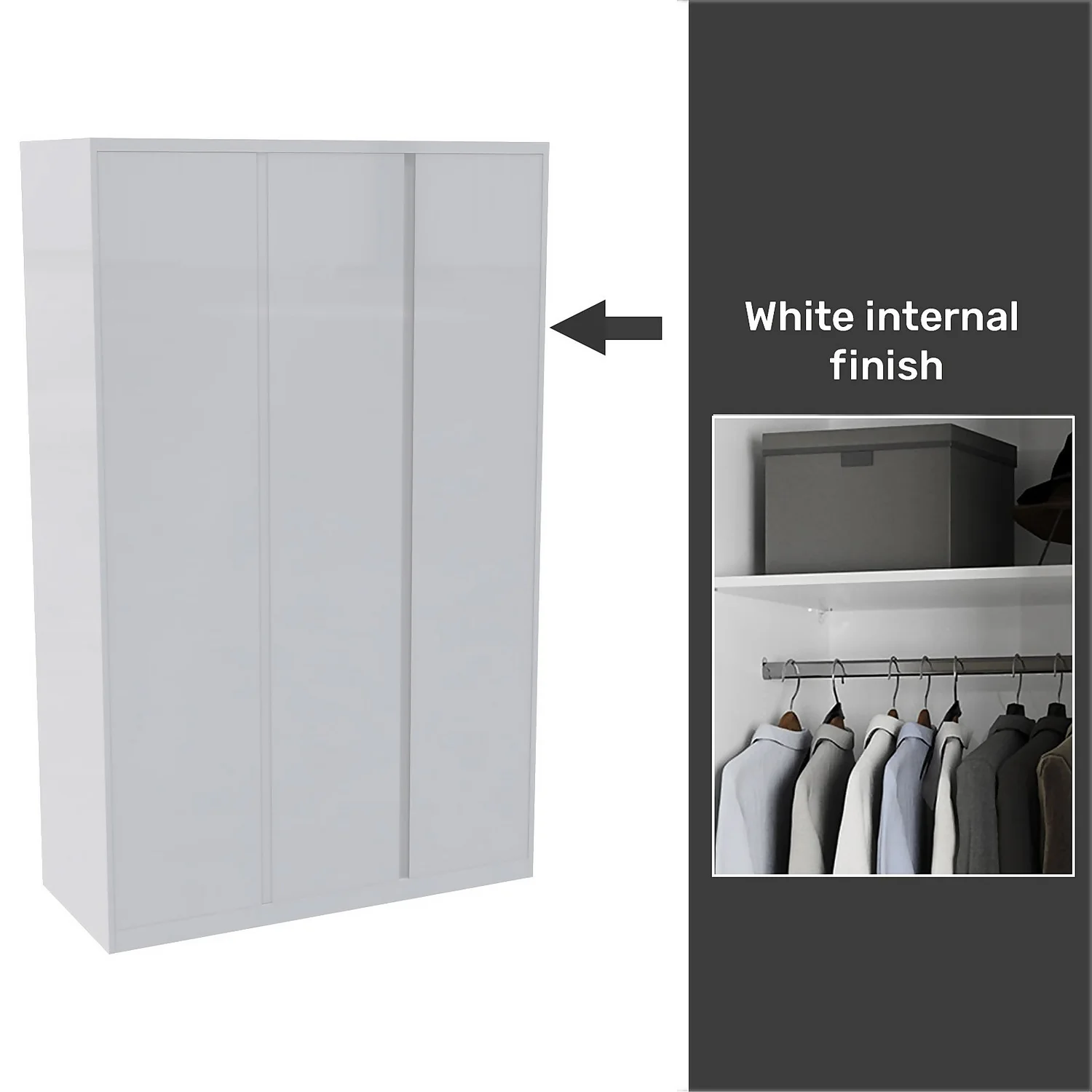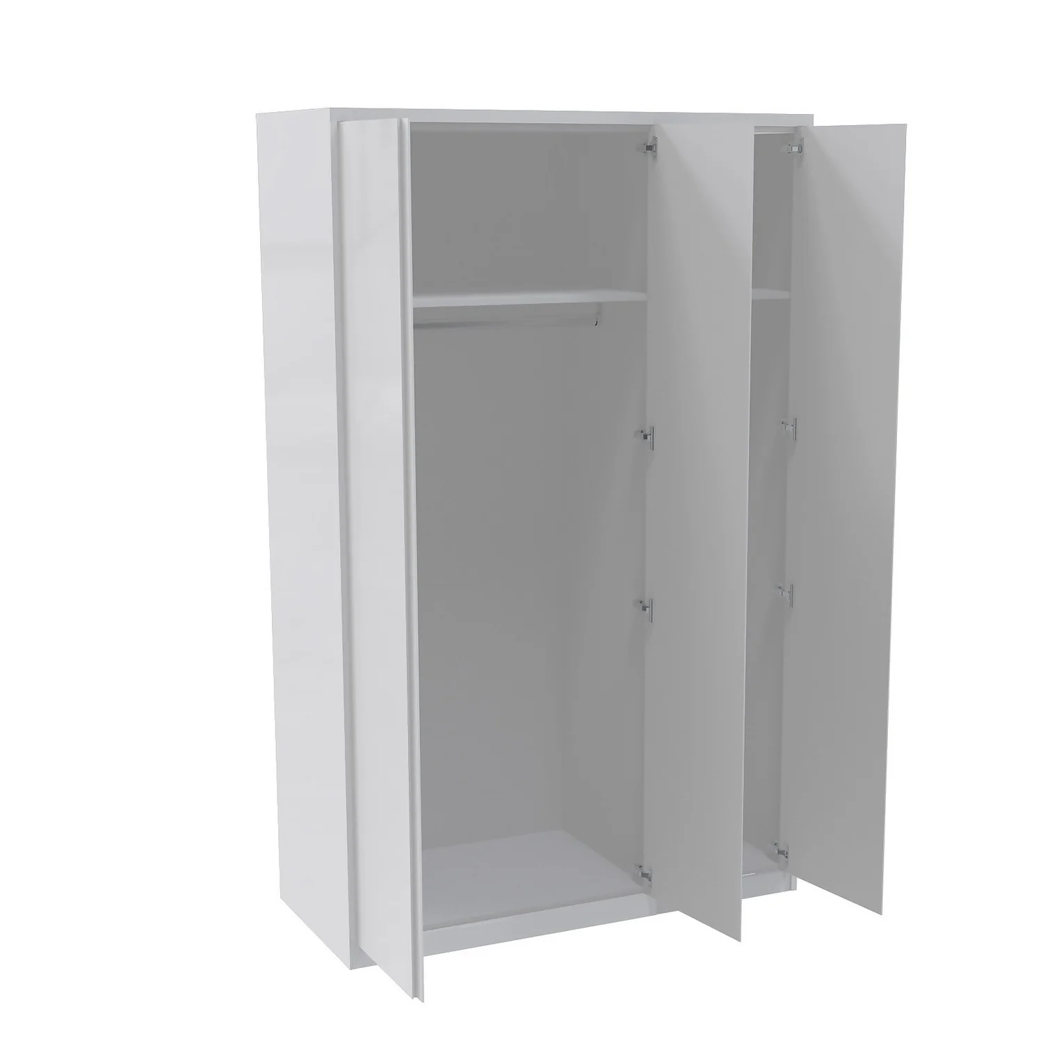 This triple wardrobe (1 x double unit and 1 x single unit) features a white internal carcass and includes end panels, plinth and matching cornice all in a finish to match the beautiful luxe gloss white handleless doors. The wardrobe features premium soft close clip-on Blum hinges, two shelves and two hanging rails. You can customise your wardrobe with our additional internal storage options (available separately) including internal drawers, shelves, dividing shelves and extra hanging rails.