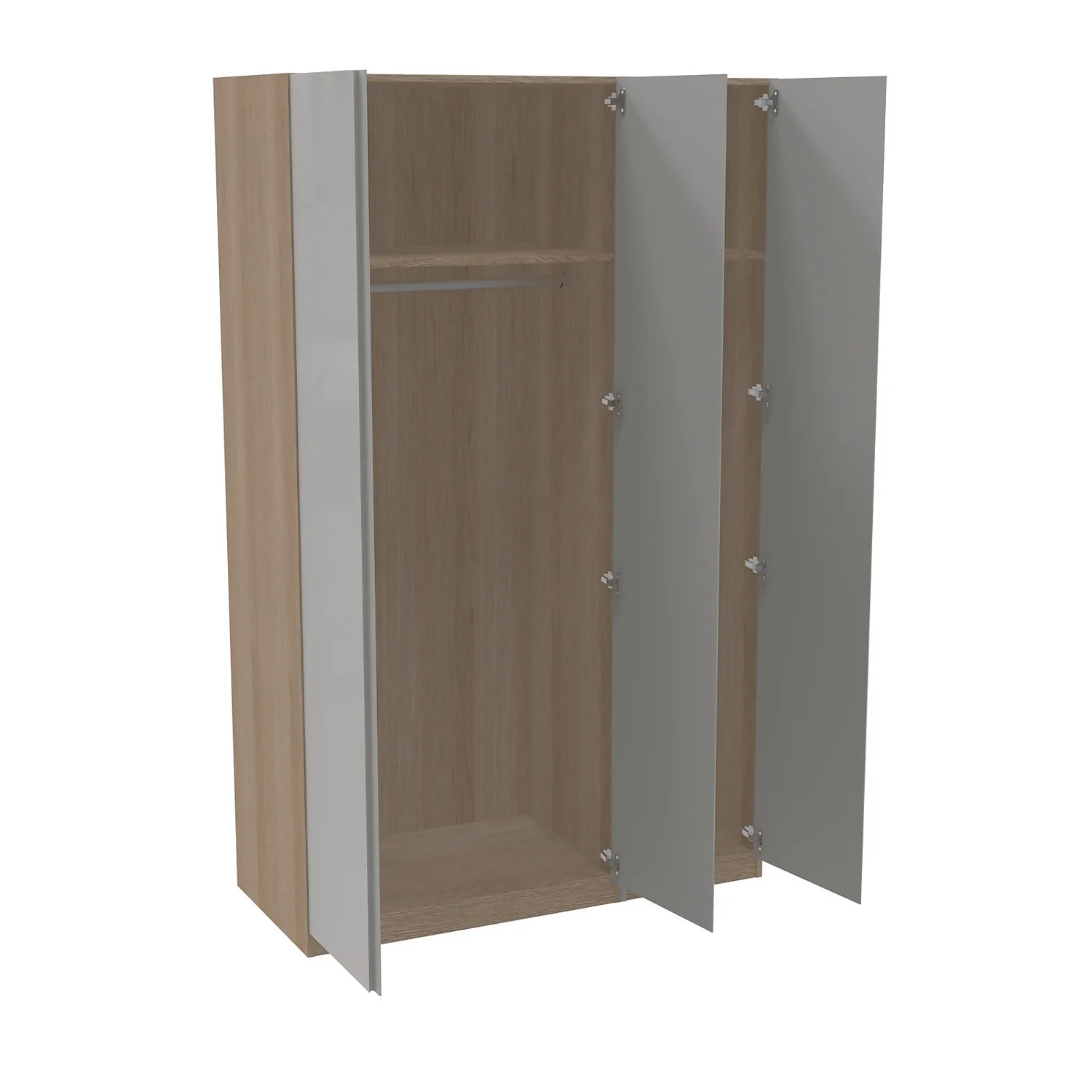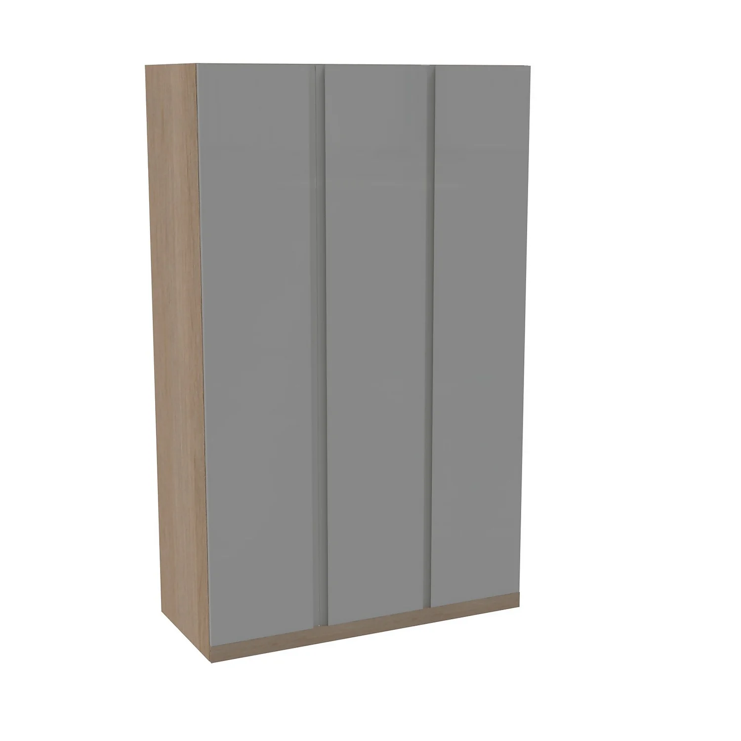 The House Beautiful bedroom range is exclusive to Homebase and offers a selection of different finishes and storage configurations to suit your needs. With a range of carcass colours and contrasting door designs, you can select the look to fit your bedroom aesthetic. This triple wardrobe (one double and one single) features an oak effect carcass and beautiful gloss grey handleless doors for a modern sleek look. The wardrobe features premium soft-close clip-on Blum hinges, two shelves and two hanging rails. You can customise your wardrobe with our additional internal storage options (available separately) including internal drawers, shelves, dividing shelves and extra hanging rails.
