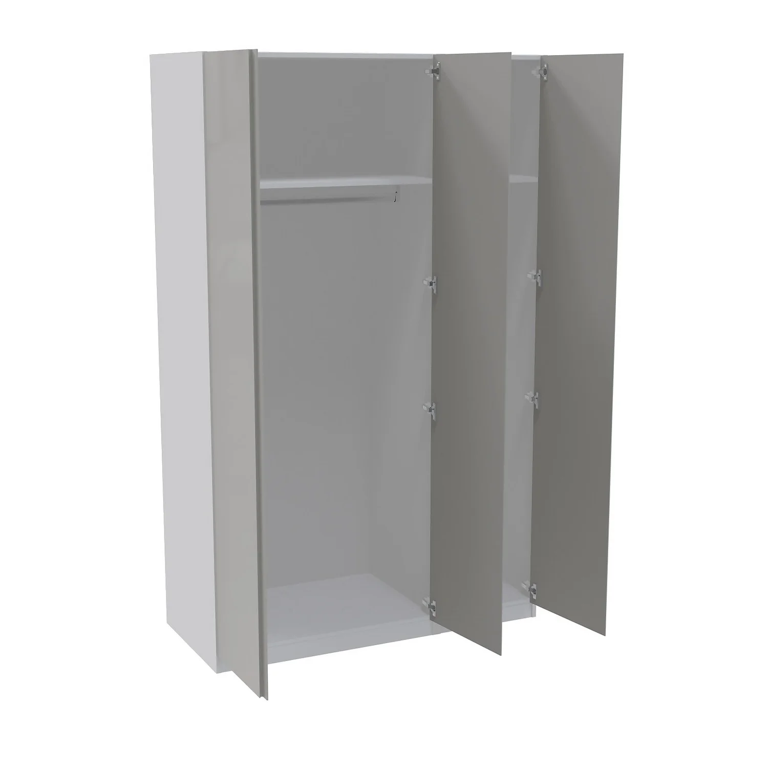 The House Beautiful bedroom range is exclusive to Homebase and offers a selection of different finishes and storage configurations to suit your needs. With a range of carcass colours and contrasting door designs, you can select the look to fit your bedroom aesthetic. This triple wardrobe (one double and one single) features a white carcass and beautiful gloss grey handleless doors for a modern sleek look. The wardrobe features premium soft-close clip-on Blum hinges, two shelves and two hanging rails. You can customise your wardrobe with our additional internal storage options (available separately) including internal drawers, shelves, dividing shelves and extra hanging rails.