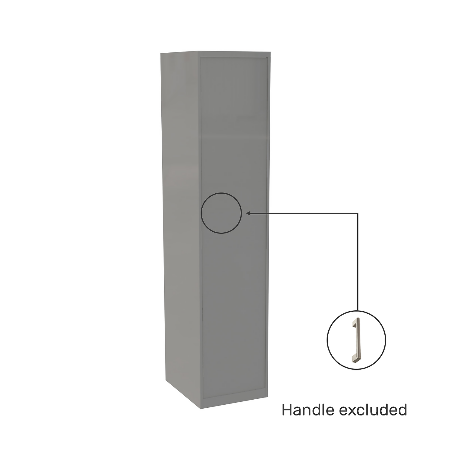 The House Beautiful range is exclusive to Homebase and offers a selection of different finishes and storage configurations to suit your needs. With a range of carcass colours and contrasting door designs, you can select the look to fit your bedroom aesthetic. The House Beautiful range now includes the fully fitted look with this combination pack which includes the wardrobe, end panels, plinth and cornice, meaning you can complete your bedroom with a luxury look. Coordinating chests of drawers are also available separately. This single wardrobe features a grey internal carcass which includes end panels, plinth and matching cornice all in a finish to match the beautiful luxe gloss grey slab door. The wardrobe features premium soft close Blum hinges, a shelf and a hanging rail. You can customise your wardrobe with our additional internal storage options (available separately) including internal drawers, shelves, dividing shelves and extra hanging rails. Choose your handles from our range of both traditional and modern to suit your desired look.