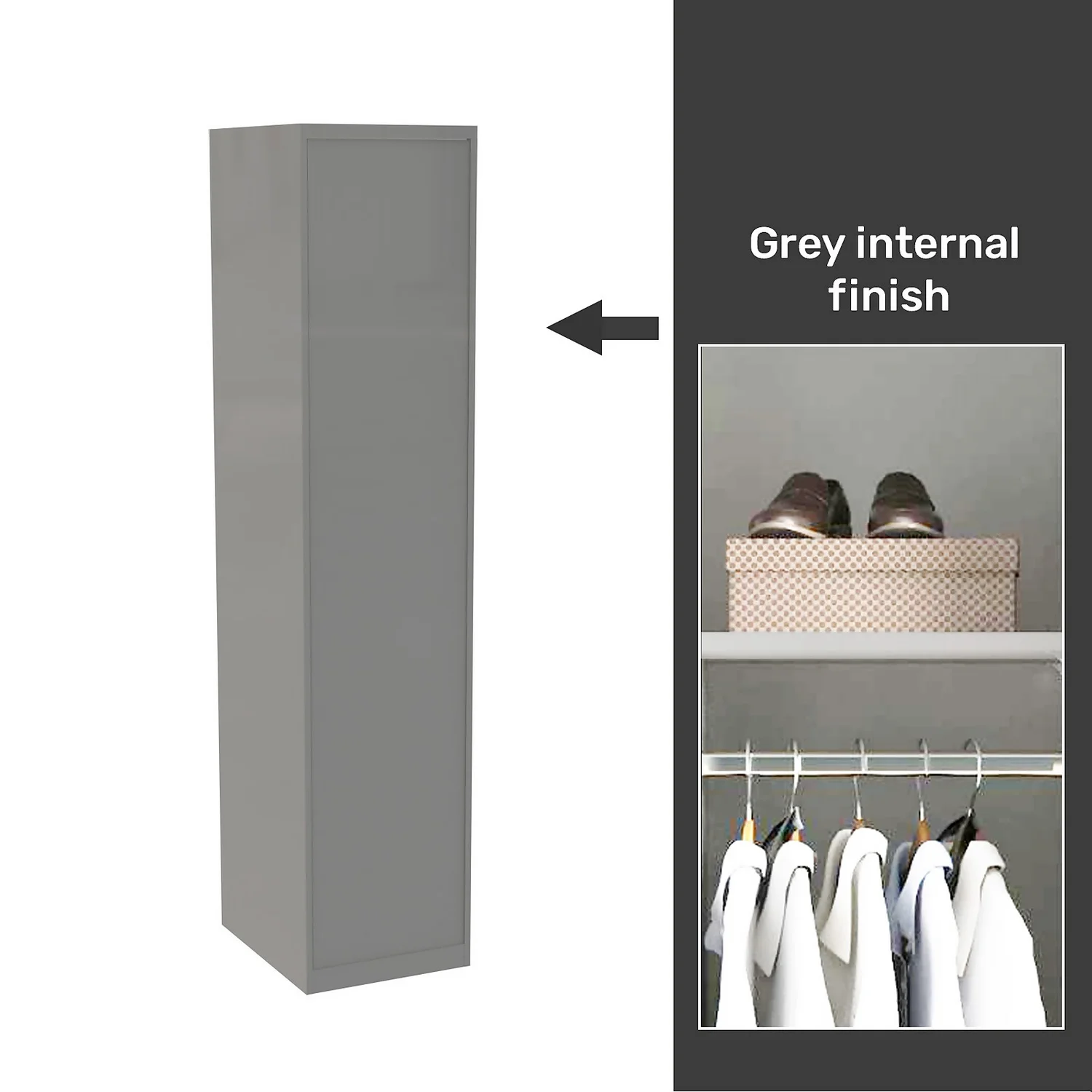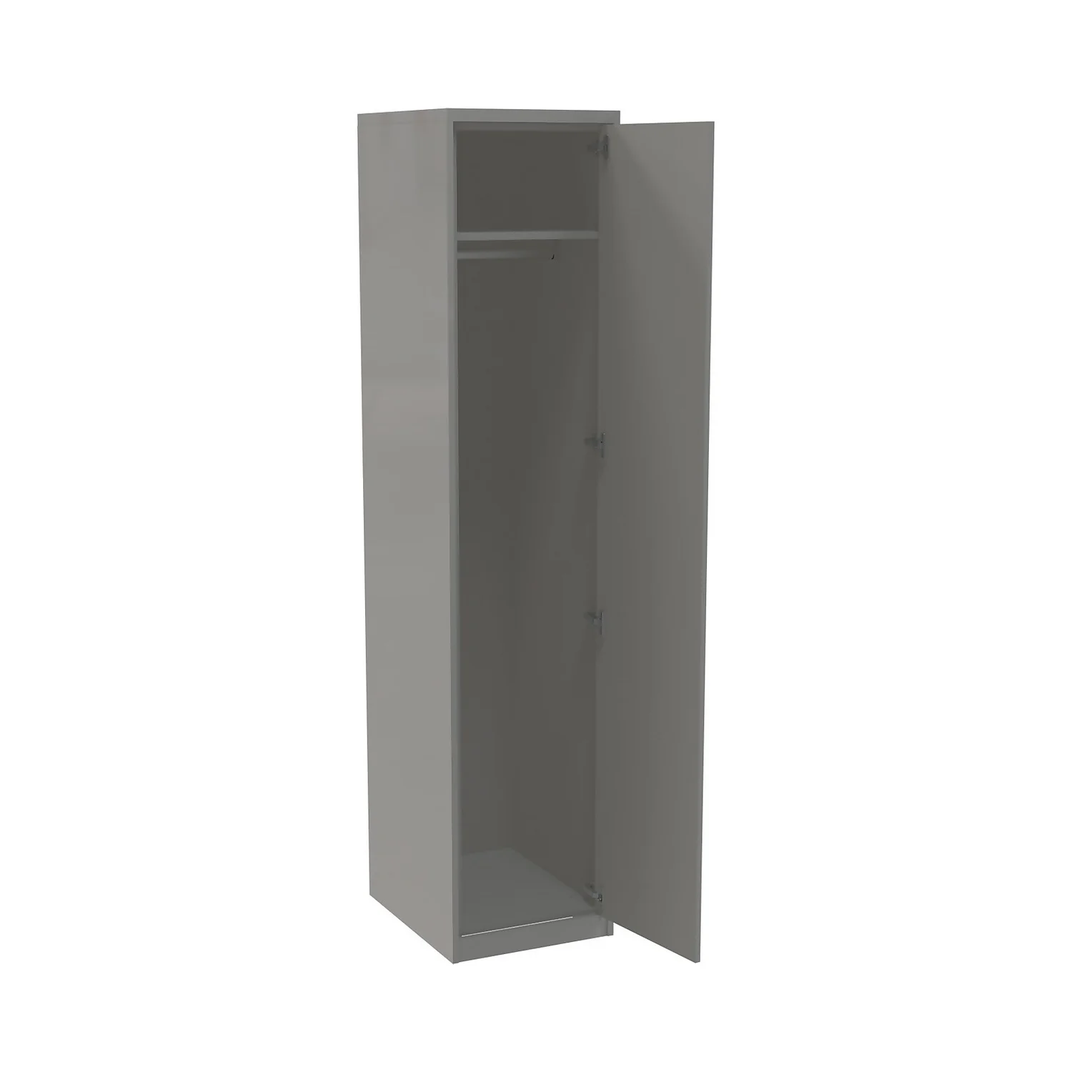 - A fitted look is achieved by using clad on panels, plinth and cornice which are all included with this wardrobe. All the elements that clad the internal grey carcass (clad on panels, plinth and cornice) are a perfect match to the gloss grey slab door