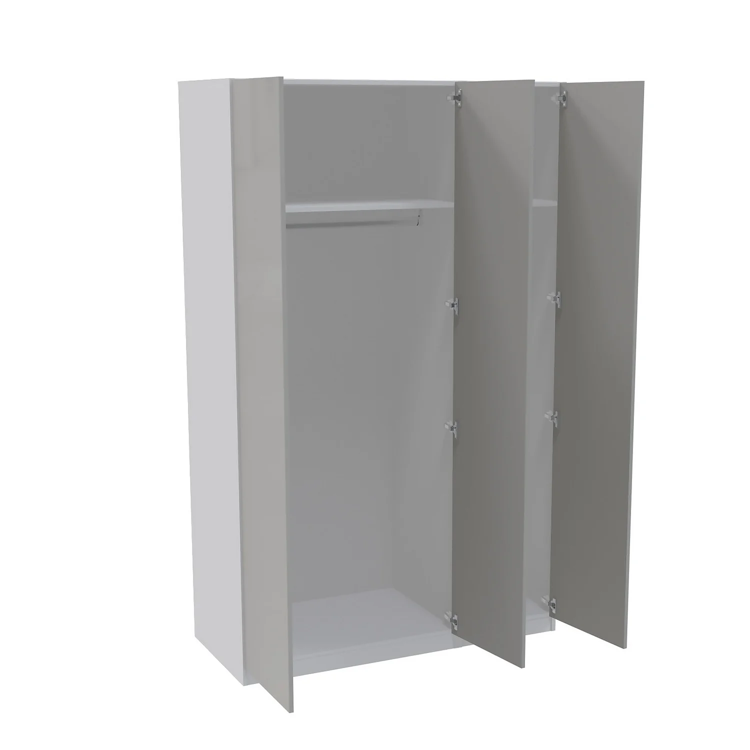 The House Beautiful range is exclusive to Homebase and offers a selection of different finishes and storage configurations to suit your needs. With a range of carcass colours and contrasting door designs, you can select the look to fit your bedroom aesthetic. This triple wardrobe (one double and one single) features a white carcass and beautiful gloss grey slab doors for a modern sleek look. The wardrobe features premium soft close clip-on Blum hinges, two shelves and two hanging rails. You can customise your wardrobe with our additional internal storage options (available separately) including internal drawers, shelves, dividing shelves and extra hanging rails. Choose your handles from our range of both traditional and modern to suit your desired look.