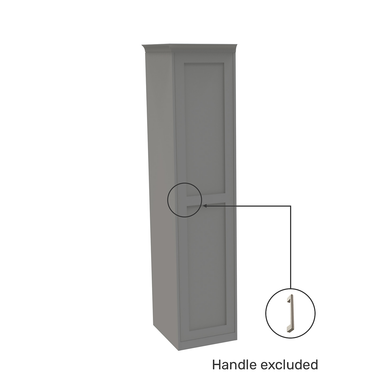 This single wardrobe features a grey internal carcass which includes end panels, plinth and matching cornice all in a finish to match the beautiful luxe matt grey shaker door. The wardrobe features premium soft close Blum hinges, a shelf and a hanging rail. You can customise your wardrobe with our additional internal storage options (available separately) including internal drawers, shelves, dividing shelves and extra hanging rails. Choose your handles from our range of both traditional and modern to suit your desired look.