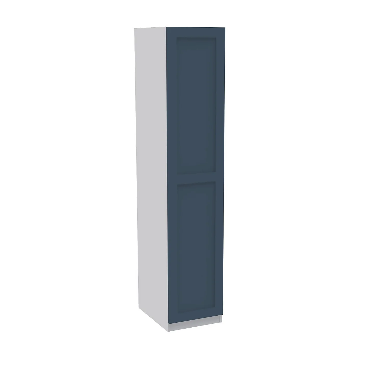 The House Beautiful range is exclusive to Homebase and offers a selection of different finishes and storage configurations to suit your needs. With a range of carcass colours and contrasting door designs, you can select the look to fit your bedroom aesthetic. This single wardrobe features a white carcass and a beautiful shaker door finished in a luxurious matt navy blue. The wardrobe features premium soft close Blum hinges, a shelf and a hanging rail. You can customise your wardrobe with our additional internal storage options (available separately) including internal drawers, shelves, dividing shelves and extra hanging rails. Choose your handles from our range of both traditional and modern to suit your desired look.