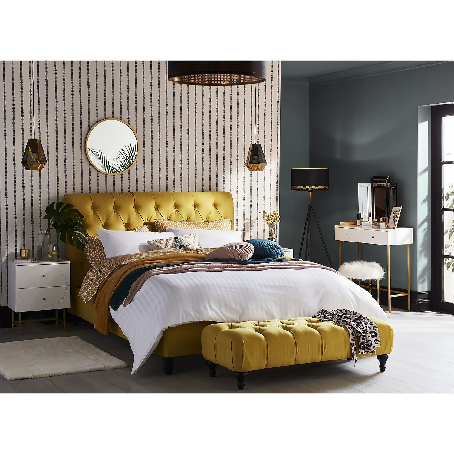 The stylish 2 drawer Taylor bedside table features a refreshing minimal single line pattern, ensuring this piece will sit well with any bedroom décor.
