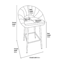 Add an elegant and sophisticated look to your breakfast bar with the Margot bar stool. The gently curved shape and cut-out back evoke a retro style while the soft, velvet upholstery and metal legs and crossbar bring a modern twist.
