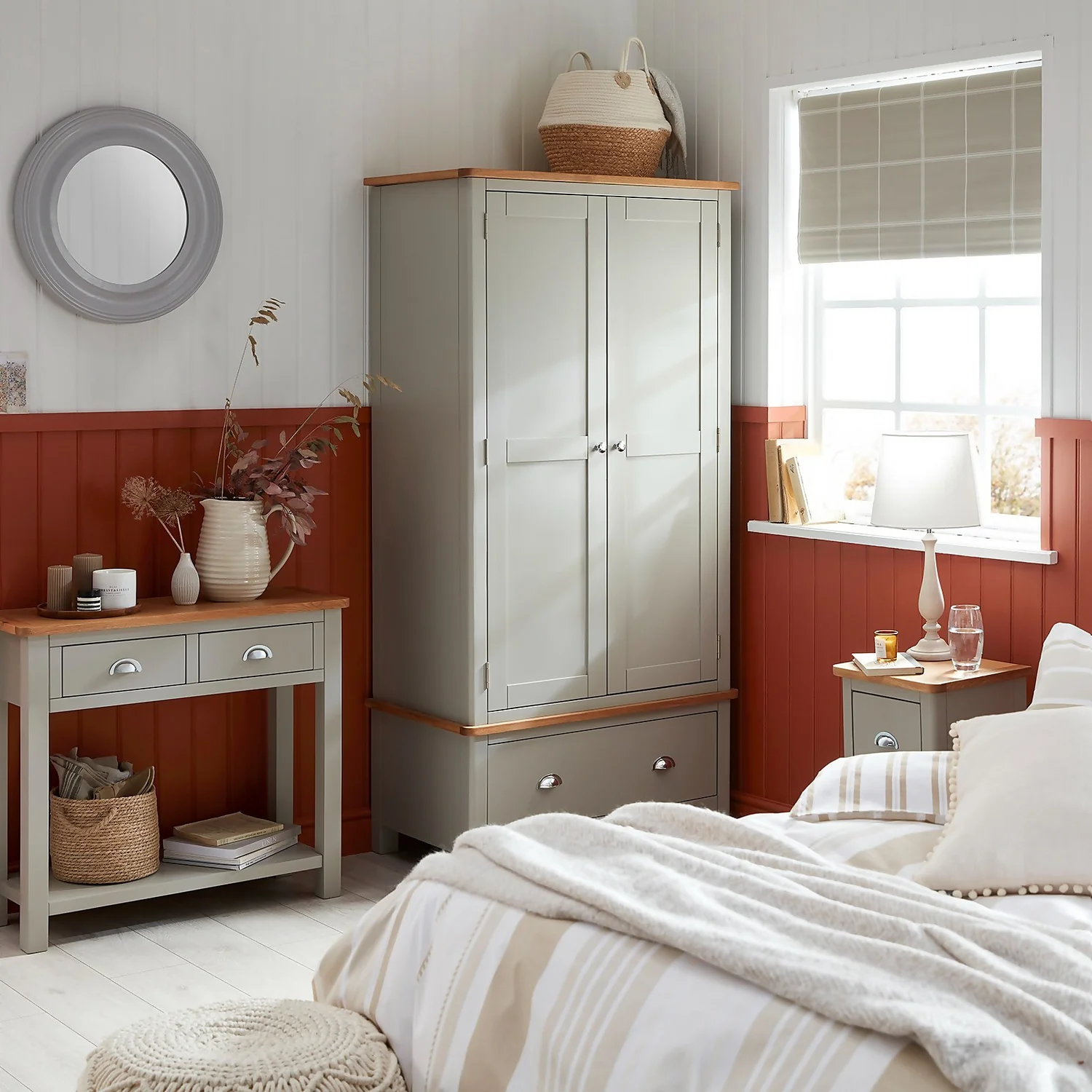 We’ve worked hard to make Norbury our most family-friendly range yet. We’ve softened all the edges, even the legs, so there are no sharp corners here. This compact collection has a small footprint, but its clever design doesn’t compromise on storage space. Meet our oak Norbury console table. With its classic oak top and cup handles, it has a charming timeless design but with a modern painted grey finish. Its streamlined design works perfectly in the hallway. Showcase a lamp or photo frame on top and hide away post and paperwork in the 2 drawers. A bottom shelf gives space for that magazine subscription or a storage basket. Welcome guests into your home in style with Norbury.