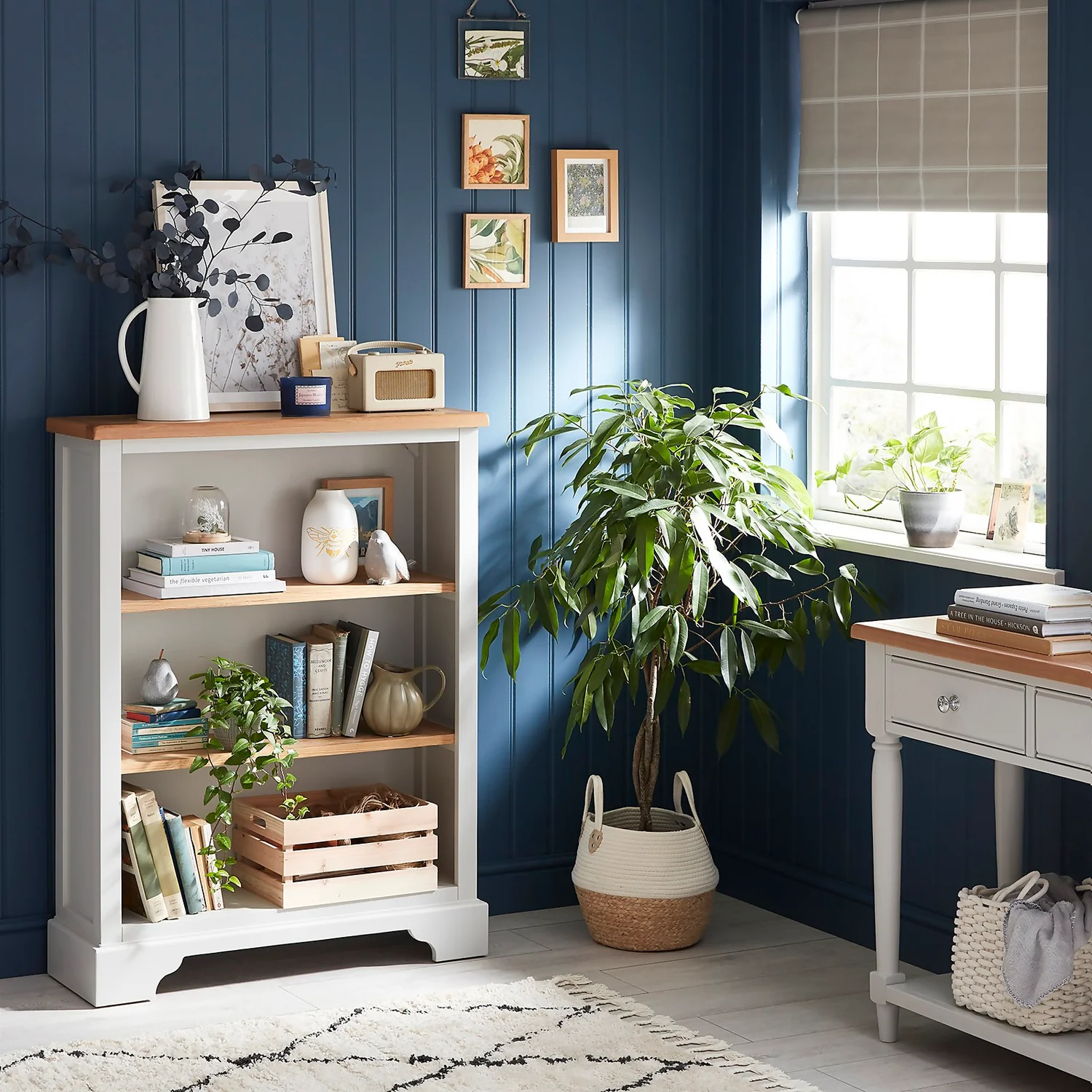 Traditional style at its best. The hand-painted Westcott exudes timeless country chic with its two-tone finish, panelled fronts and elegant stepped plinth. The fresh ivory tone gives this bookcase a modern lift. Its open design encourages you to create an impressive display of your belongings. Your non-fiction collection, plants and ornaments can all find a home on the shelves of this delightful unit. It makes a great stand-alone piece or team it with other items in the Westcott collection for a cohesive look.